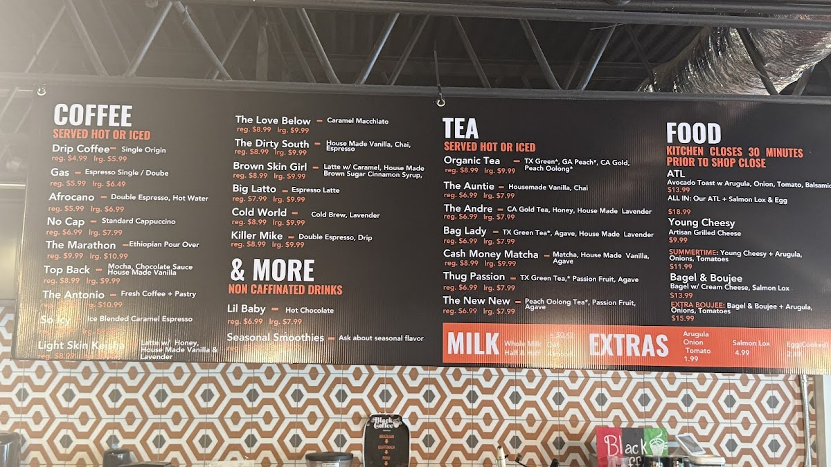 The food menu is equally inviting, featuring inventive dishes like the Bagel & Boujee and Extra Boujee, alongside hearty options such as Atl and All In. Noteworthy is their salmon bagel, a standout from the usual cream cheese offering, elevating the morning bite with sophistication. Customer favorites highlight the welcoming atmosphere and top-notch service, making every visit a positive experience.